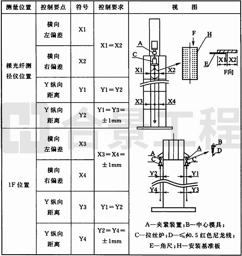 5 紫外固化裝置中心與拉絲爐中心垂線(xiàn)的允許偏差應(yīng)為±0.5mm。
